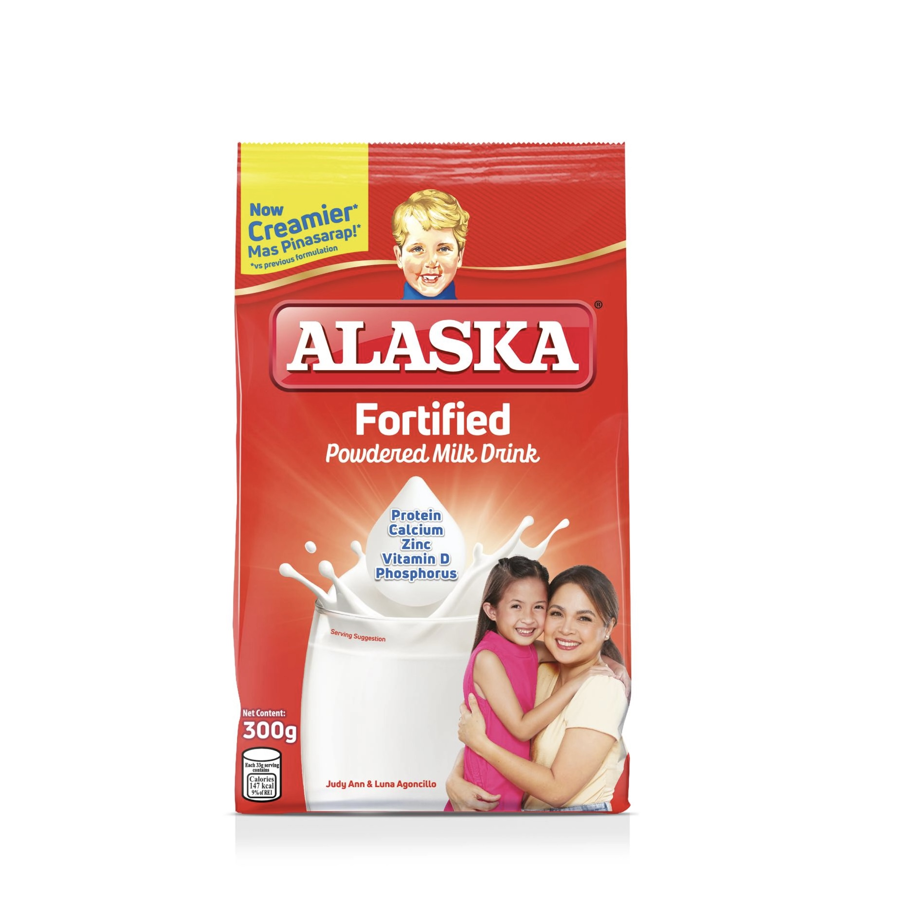 حليب مجفف مدعم من ألاسكا (Alaska Fortified Powdered Milk Drink). المكونات الرئيسية: يحتوي على بروتين، كالسيوم، زنك، فيتامين د، وفوسفور.